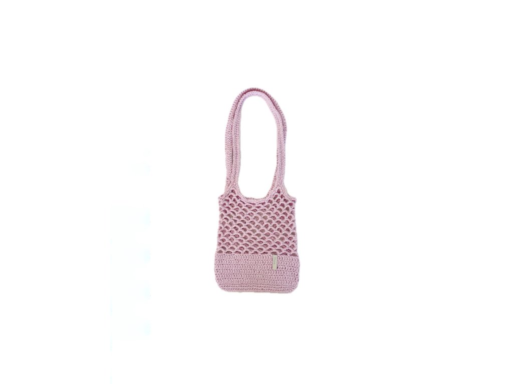 The crocheted handbag is handmade from organic cotton fibers without the use of artificial interventions such as fertilizers, pesticides or genetically modified plants. The bottom of the handbag is crocheted with a dense pattern that reinforces the bottom. The remaining parts are made up of a chain pattern. The handbag has sufficiently long handles and sits well on the shoulder. An original accessory for hot summer days.